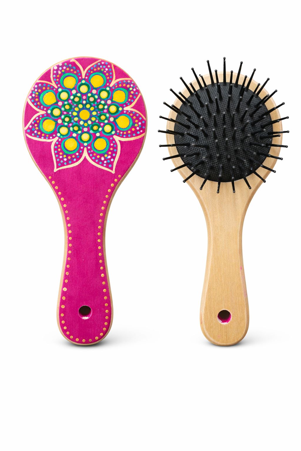 Cepillo de bambú pintado a mano con ilustración original. Cada pieza es única y elaborada cuidadosamente de forma artesanal.