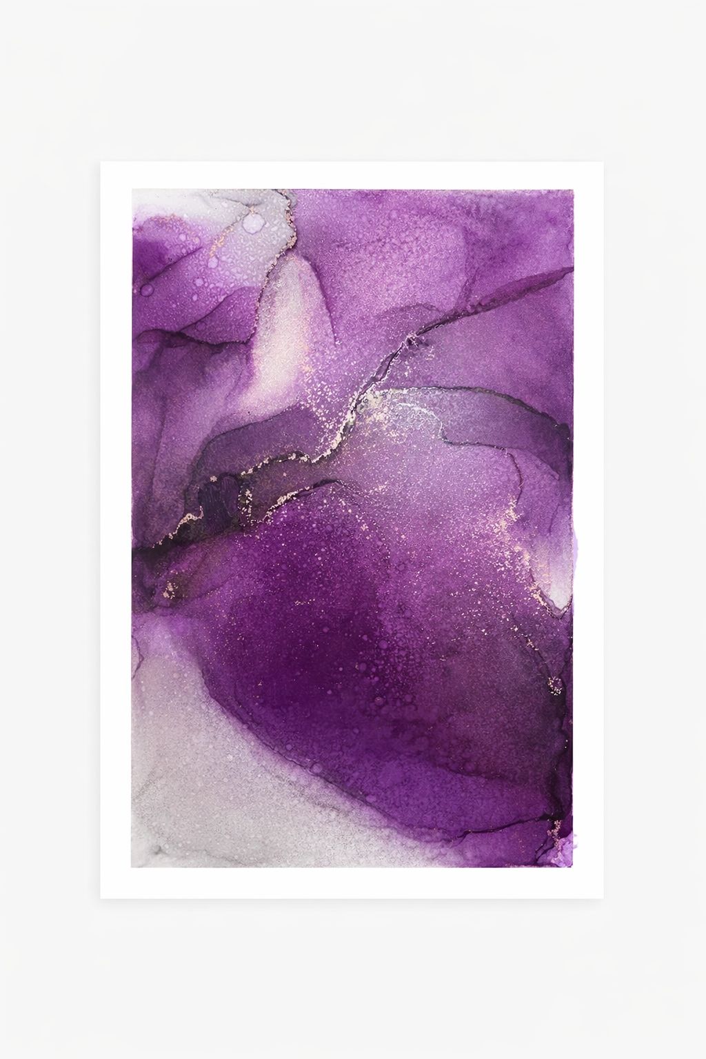 Atmósfera de colores Violetas profundos y matices lavanda se funden en capas suaves que parecen respirar entre luz y sombra. Delicados destellos recorren la superficie como un susurro luminoso, aportando textura y profundidad. La composición transmite serenidad, introspección y una belleza que se revela en silencio.