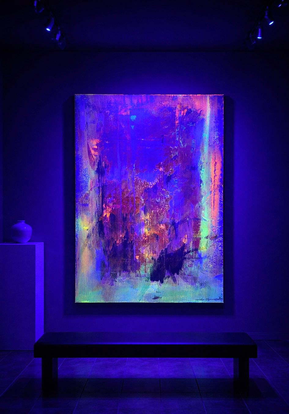 Técnica: Acrílico sobre bastidor con pigmentos fluorescentes (reacción a luz led)